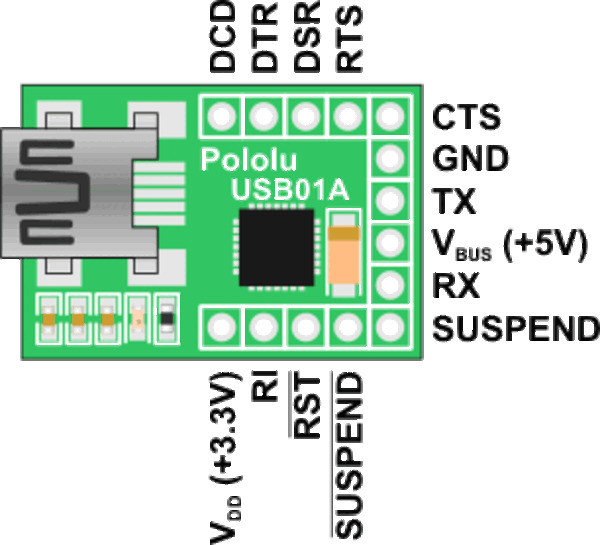 1. I soldered my Pololu USB to serial adapter (which I bought