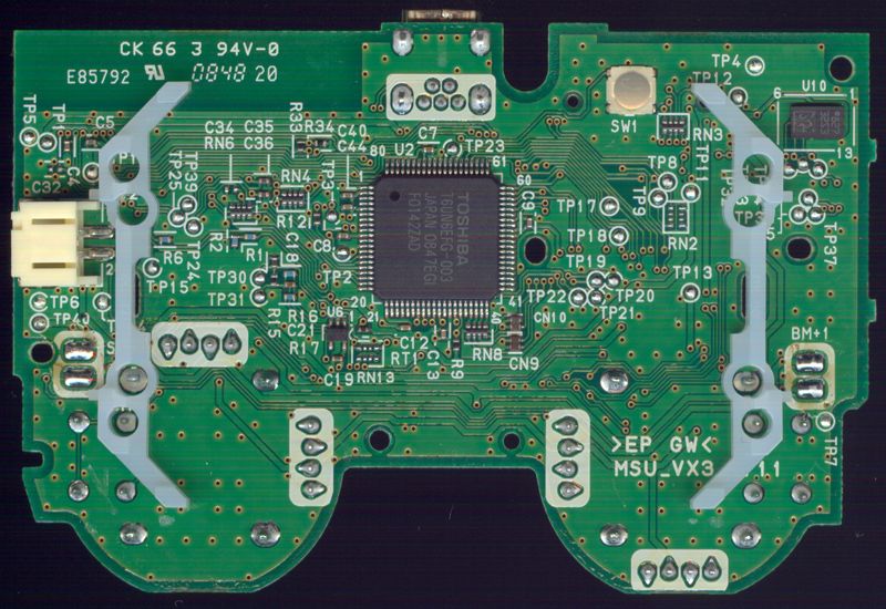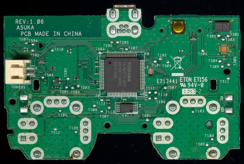 ASUKA REV: 1.06As with earlier versions, there are no useful TP spots for any of the buttons, and just about every useful Via on the bottom side of the board is gone from this controller as well, so you'll be going top side for extra buttons on this one.