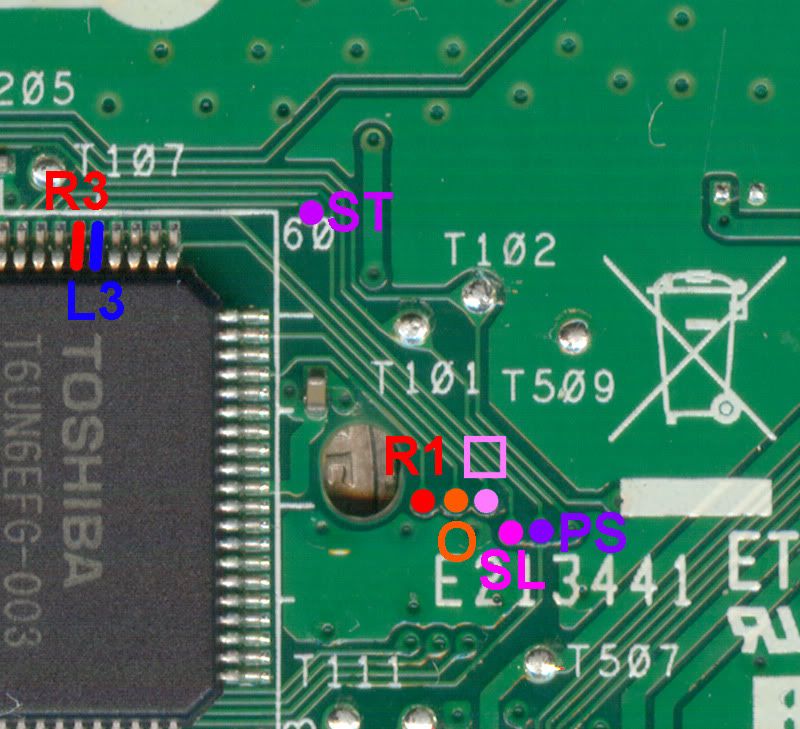Again there is no TP spot for the COM3 line and the best place to use is one of the solder joints for the L3/R3 buttons, or you can hit a Via for it if you like.