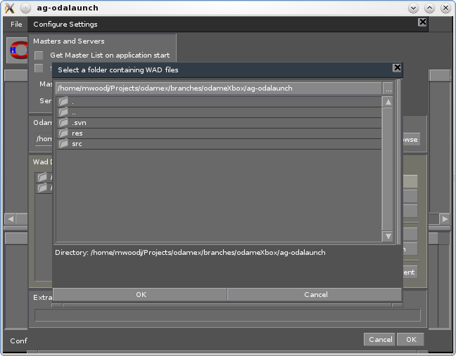 The console version will be slightly different as the Odamex path selector will be removed since we will know where to find Odamex. The search will not be recursive so any wad containing directories must be added. Adding a directory is simple with a directory selector popping up for you to navigate through: