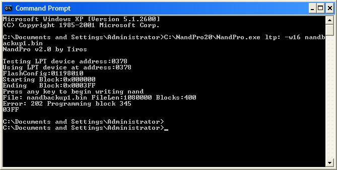 C:\Documents and Settings\artik\Desktop\NandPro20>NandPro.exe lpt: -r16 nand.bin